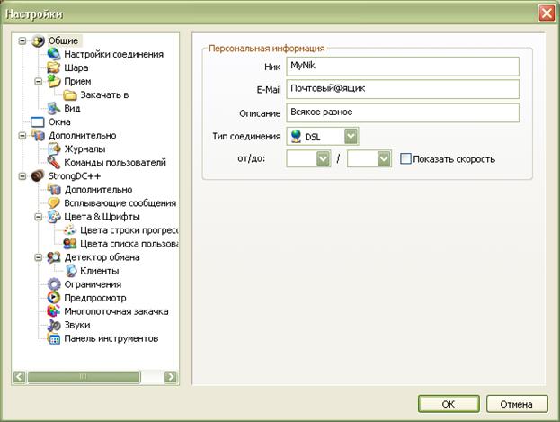 Мои настройки StrongDC++ и Outpost